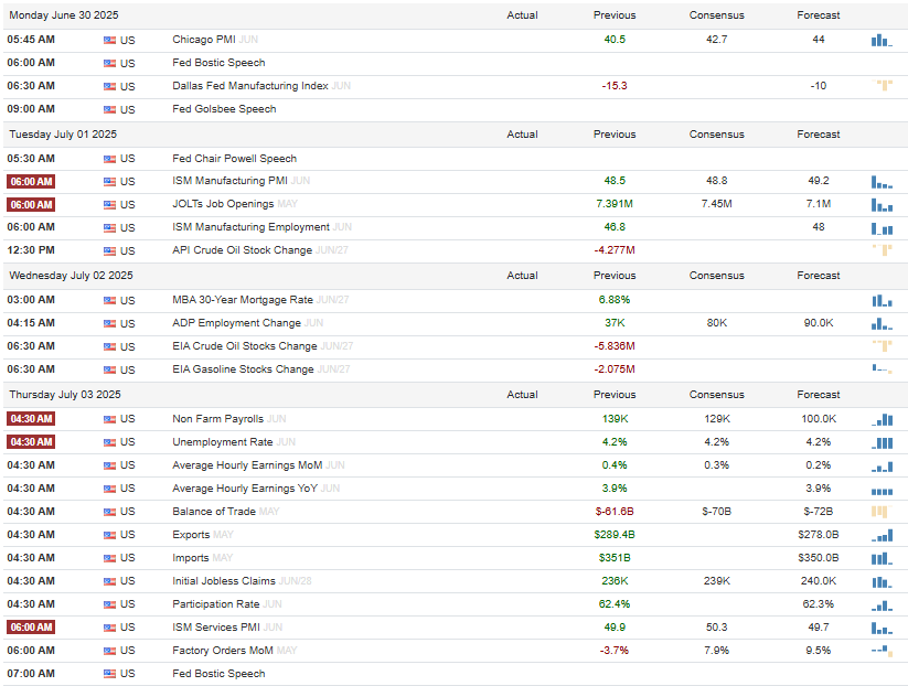 Economic Events for Next Week.
